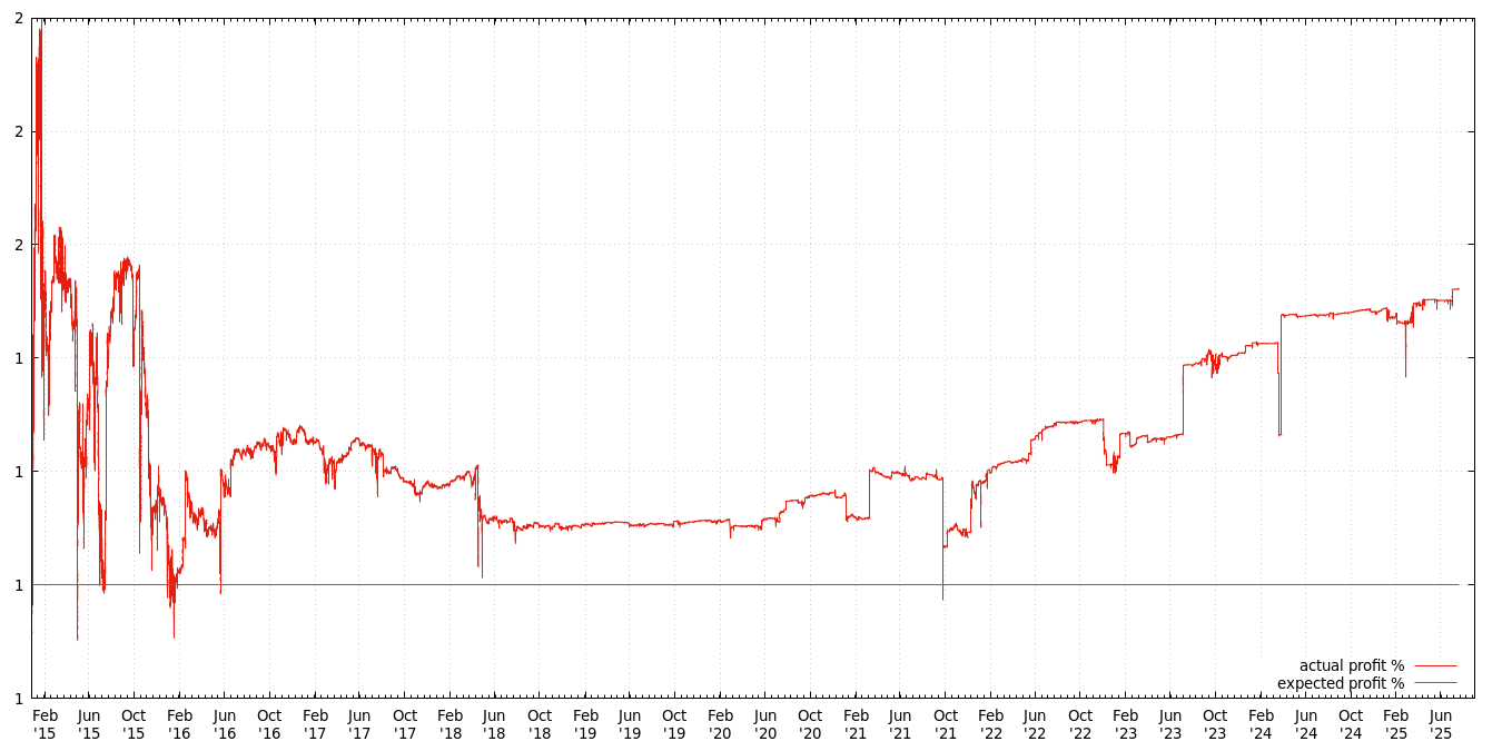 For example, suppose you are playing with a 50% chance to win (ie. a 1.98x payout). You bet 1 CLAM and lose. You double up to 2 CLAM and lose again. You double again and lose 4 CLAM, and then double one more time to 8 CLAM and win. You have played 4 times and won once. Your luck shows as 50% since you have won half as many games as you would expect to with a 50% chance of winning, but your profit is positive. You have lost 1+2+4 = 7 CLAM and won 0.98*8 = 7.84 CLAM for a profit of 0.84 CLAM.